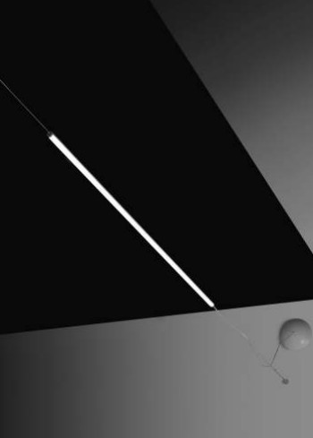 Lampada orientabile e scorrevole su cavo, struttura in alluminio diffusore in policarbonato opale, luce diffusa.