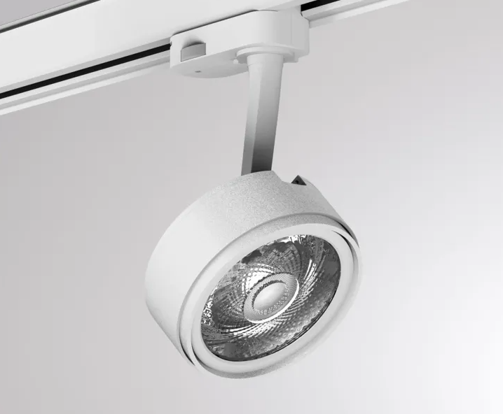 Faretto da binario LITIN 2 track con adattatore trifase, IP20 10W 790lm 3000K angolo di emissione 40° ruotabile di 350°, orientabile di 90°, alimentatore non dimmerabile incluso, fiitura colore bianco, Ø90 mm x 135mm